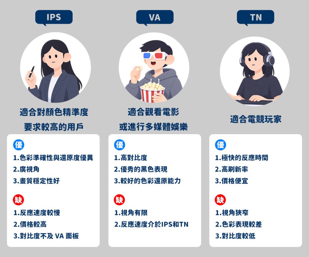 ▲ 買電腦螢幕前要先知道!|IPS、VA、TN 電腦螢幕面板 要怎麼選才對 _ 圖片出處 ChatGPT