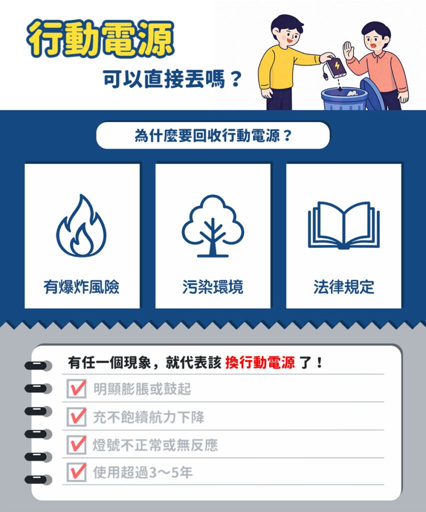 下次當你發現抽屜深處有顆不明來歷的行動電源,別再心想「之後再說」,就趁週末出門時順手丟回收吧!