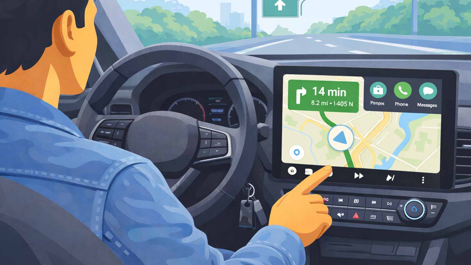 Safety first: Large text, a simplified interface, and voice control to minimize distractions.