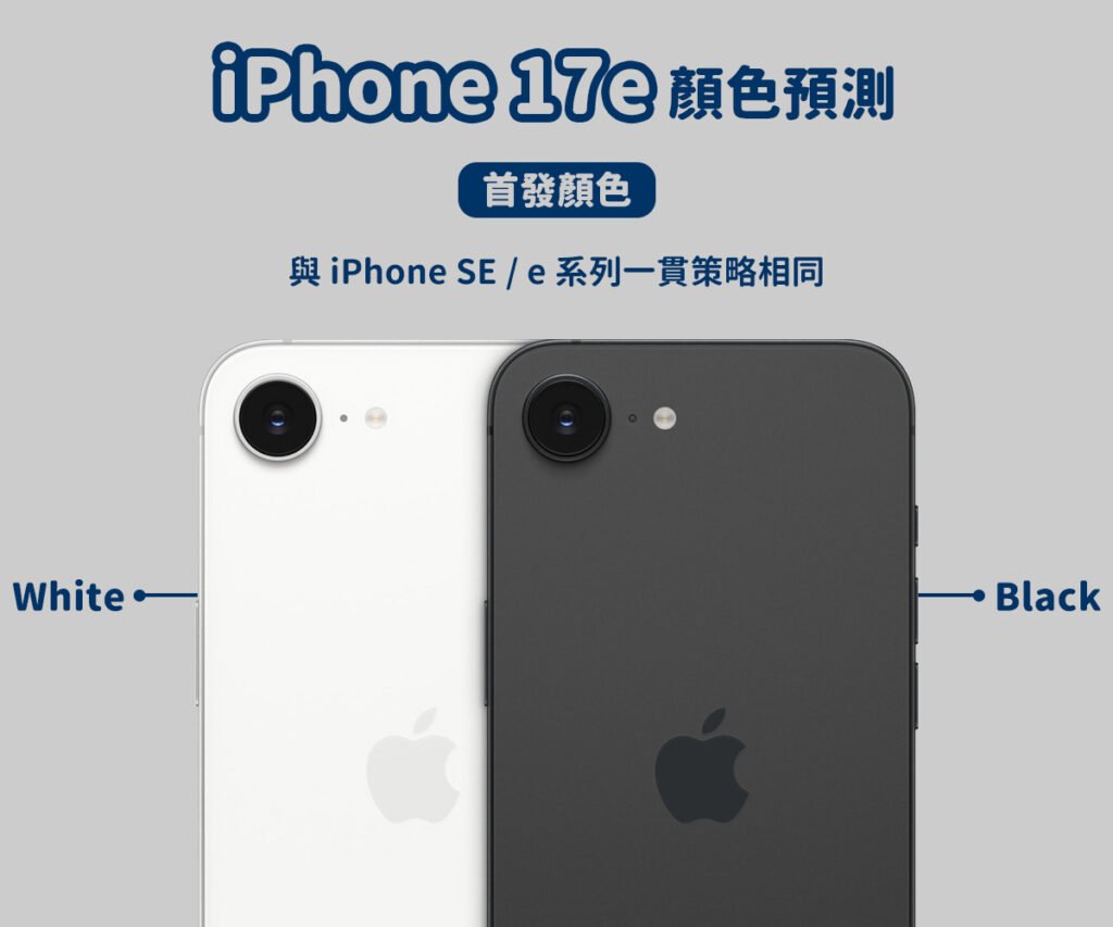 根據供應鏈與配件商消息,iPhone 17e 初期主打 經典雙色策略,預期首發顏色為: