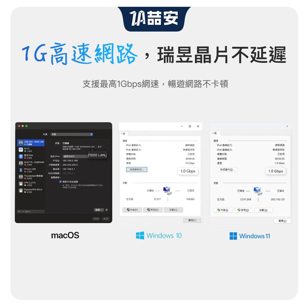 • 3.2 Gen1 瑞昱晶片1Gbps高速乙太網路