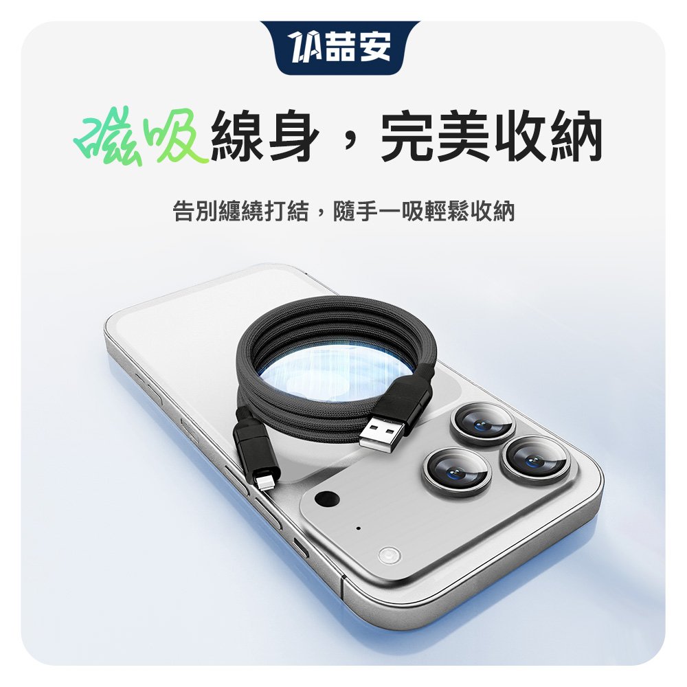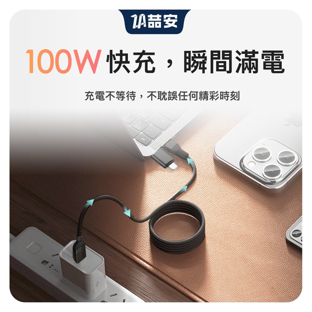 - PD 100W快充、USB 2.0高速傳輸、編織抗拉扯、磁吸收納不纏繞