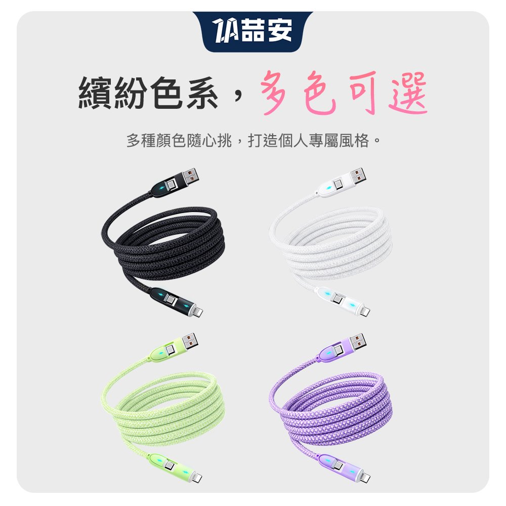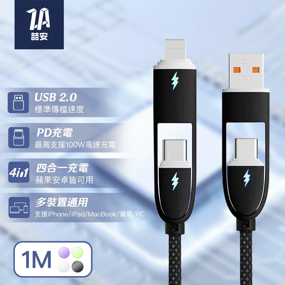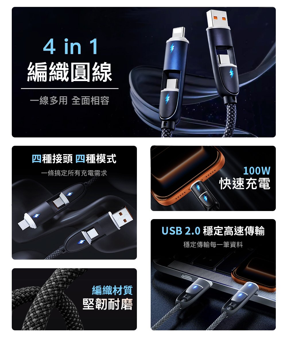 四合一 Type-A/C to Type-C/Lightning 編織充電線 1M