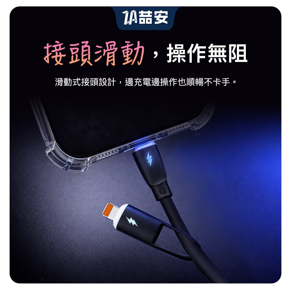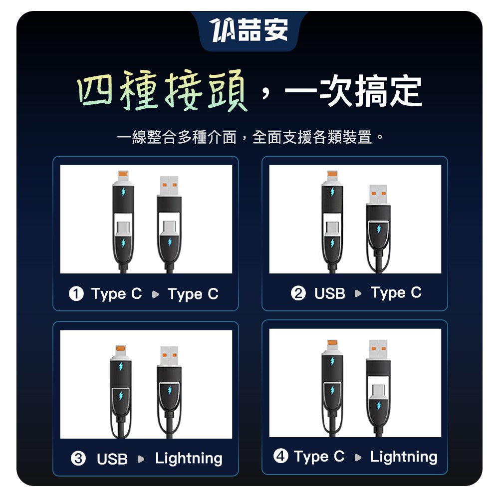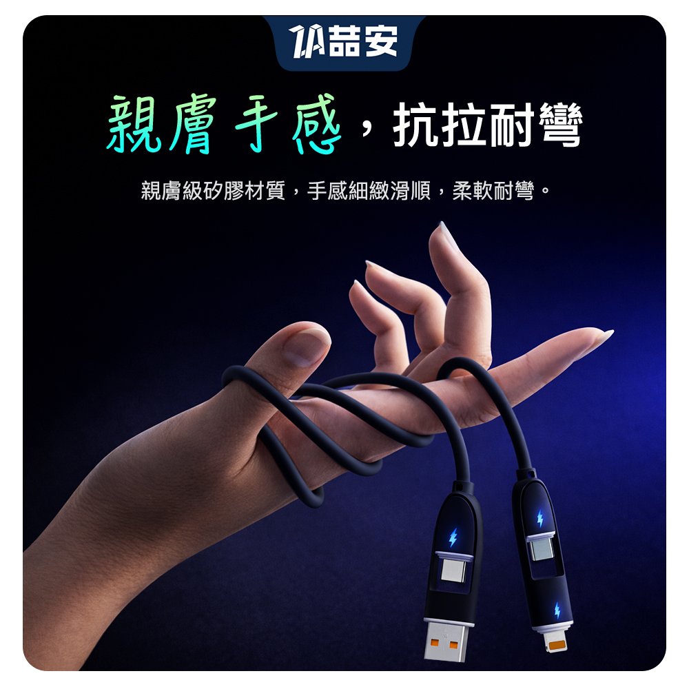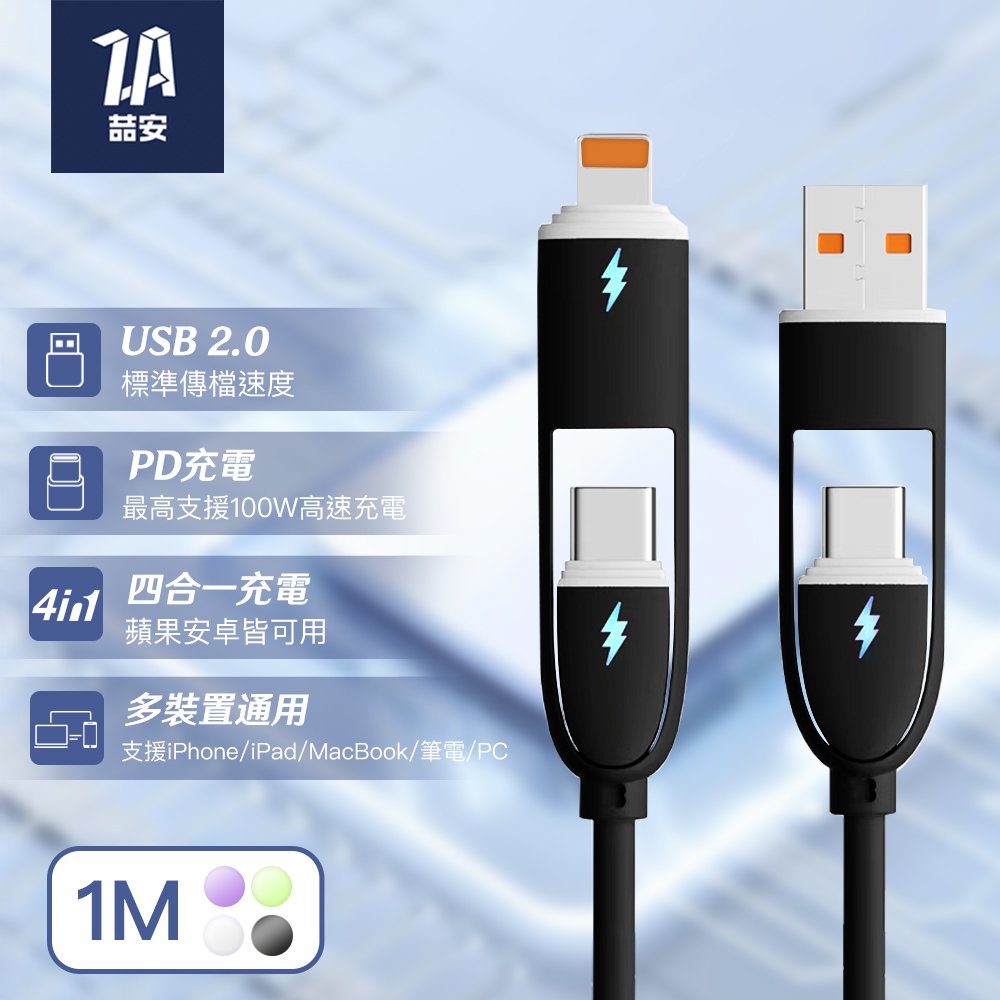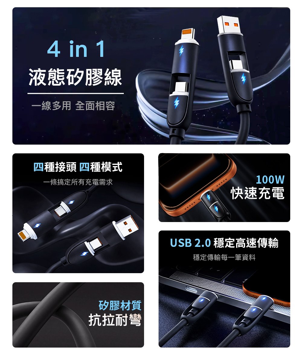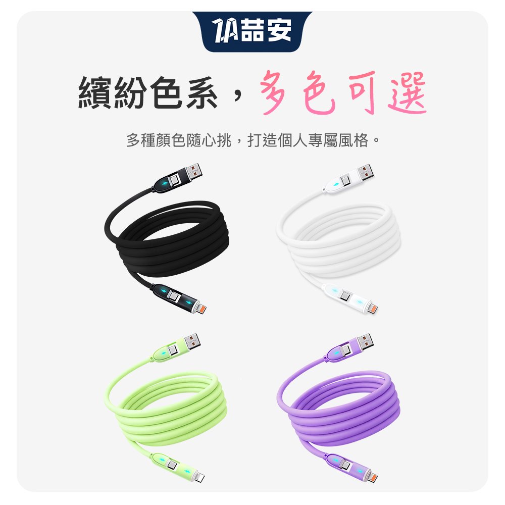四合一 Type-A/C to Type-C/Lightning 液態矽膠充電線 1M
