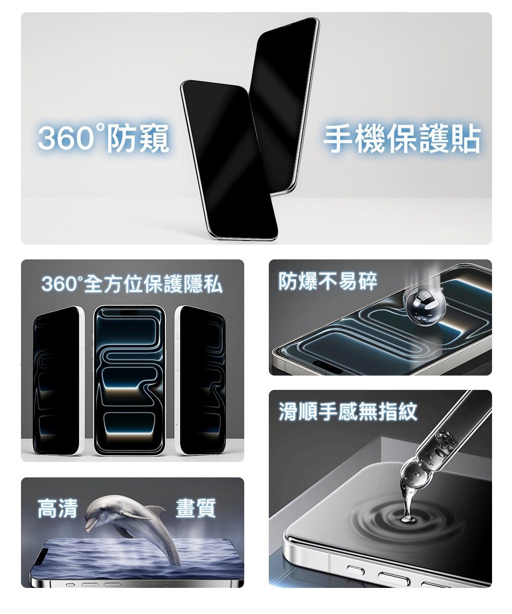 - 360度無死角,全向防窺