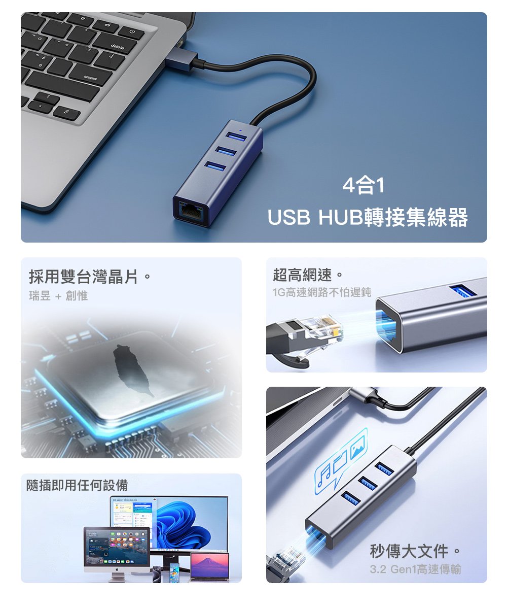 - 瑞昱晶片1G高速網路、全3.2 Gen1高速傳輸