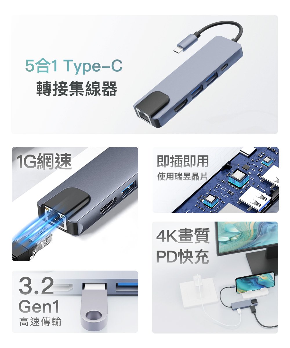 - 4K投影、3.2 Gen1高速傳輸、1G RJ45網路、PD快速充電