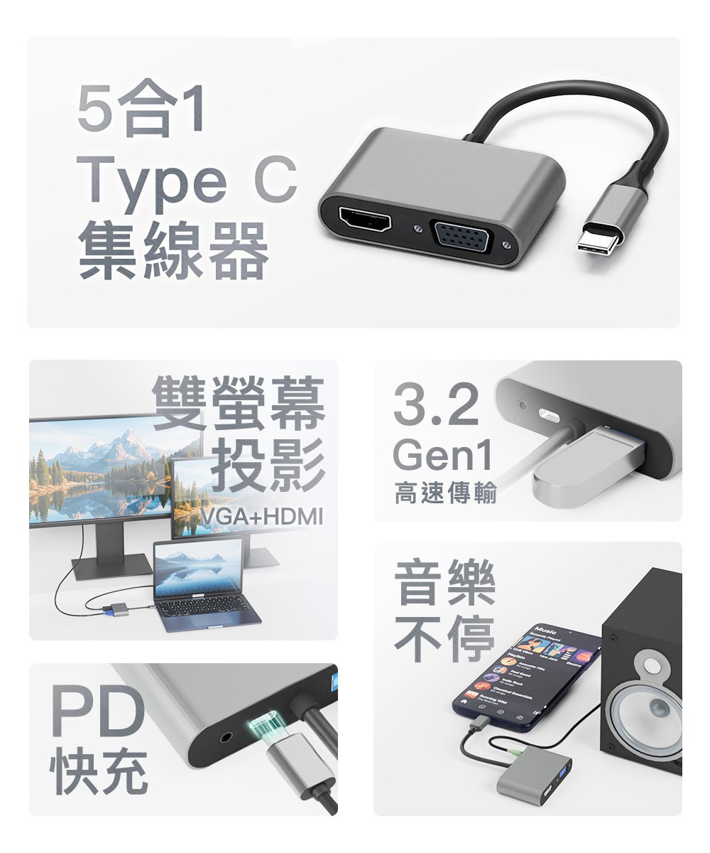 5合1 Type-C HUB轉接集線器