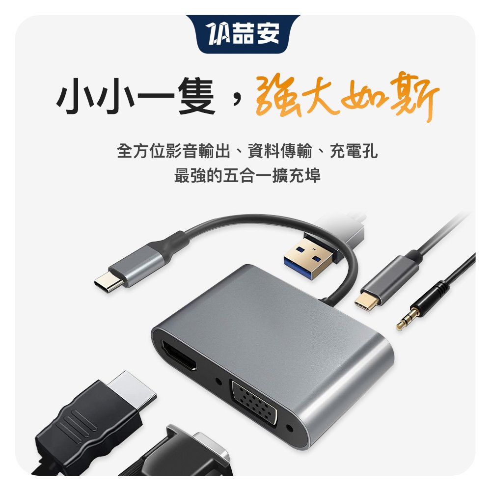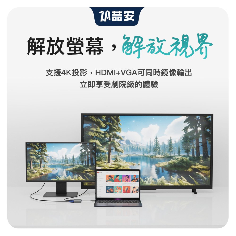 • 4K投影(HDMI+VGA可同時輸出)、3.2 Gen1高速傳輸、PD快速充電、AUX 3.5mm音源
