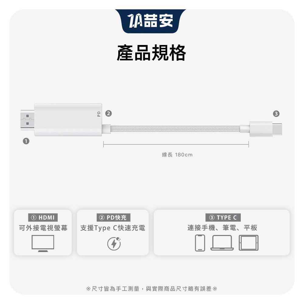 支援Netflix、Disney+、Line TV、Friday影音 1*Type-C PD充電 (最高支援 60W 功率) 1*HDMI (最高支援 4K UHD 3840×2160@60Hz, 1920×1080@240Hz) 一手機電腦需支援 DP alt mode 功能才能輸出 HDMI 一支援M1~M4晶片的MacBook及iPad 一支援iPhone 17/16/15 一更多相容性請加LINE客服確定 (ID @za3c)