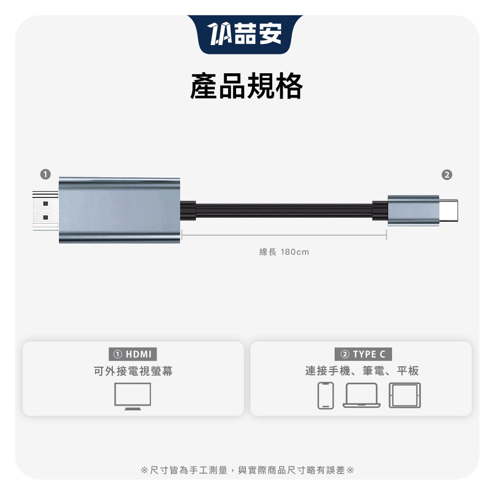 支援Netflix、Disney+、Line TV、Friday影音 1*HDMI (最高支援 4K UHD 3840×2160@60Hz, 1920×1080@240Hz) 一手機電腦需支援 DP alt mode 功能才能輸出 HDMI 一支援M1~M4晶片的MacBook及iPad 一支援iPhone 17/16/15 一更多相容性請加LINE客服確定 (ID @za3c)